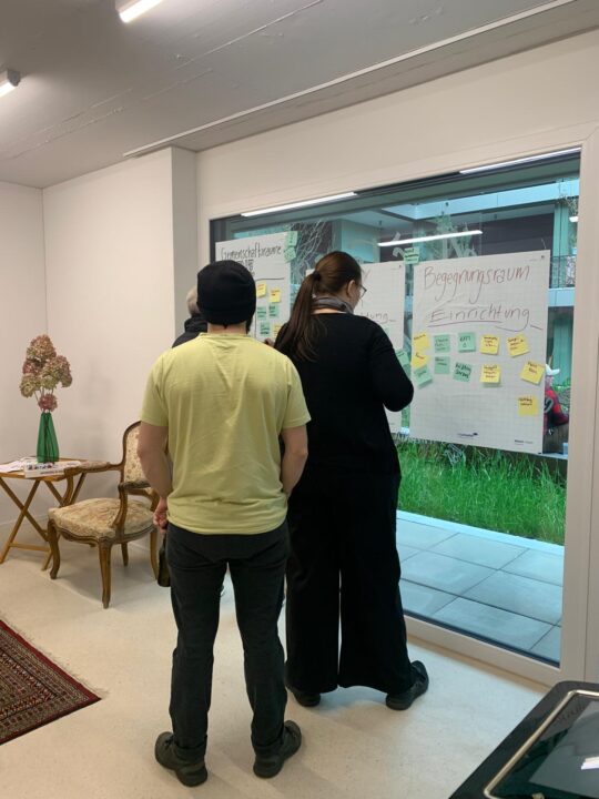Die Bewohnenden gestalten den Gemeinschaftsraum aktiv mit, indem sie ihre Ideen in Workshops einbringen. Regelmässiger Austausch stellt sicher, dass ihre Anliegen berücksichtigt werden. So entsteht ein Raum, der den Bedürfnissen der Gemeinschaft entspricht und gemeinsame Aktivitäten sowie nachbarschaftliche Beziehungen stärkt.